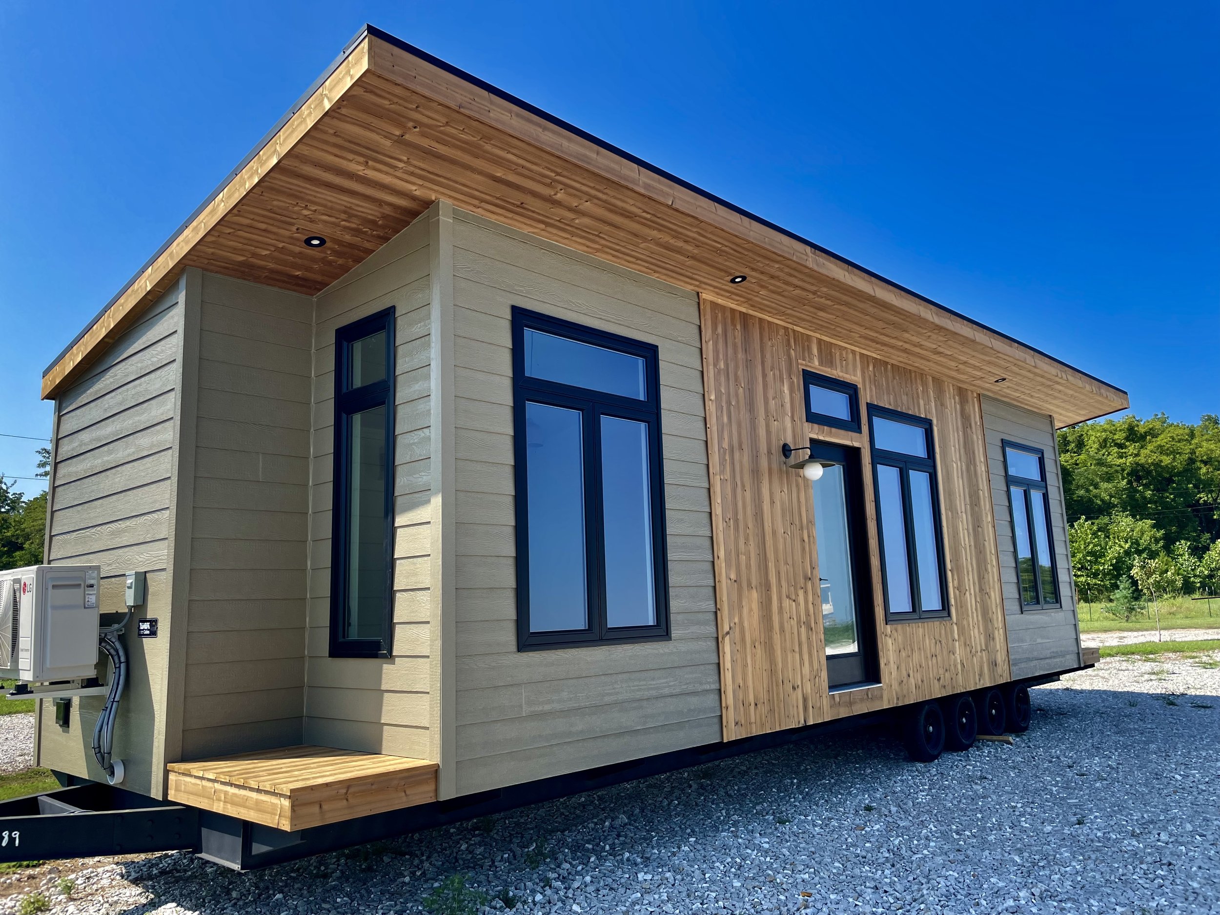 Includes a full bathroom with high quality water fixtures and quartz countertops in the kitchen and bathroom, a spacious full sized master bedroom, a simple main room with plenty of space for a couch, table and kitchen area. The exterior is complete with 26 gauge roof metal and LP Lap siding accented with Lunawood Thermowood. Park models are our most common build here at Premium Structures. We do approximately 30 park models each year and would love to help you out with your next project!